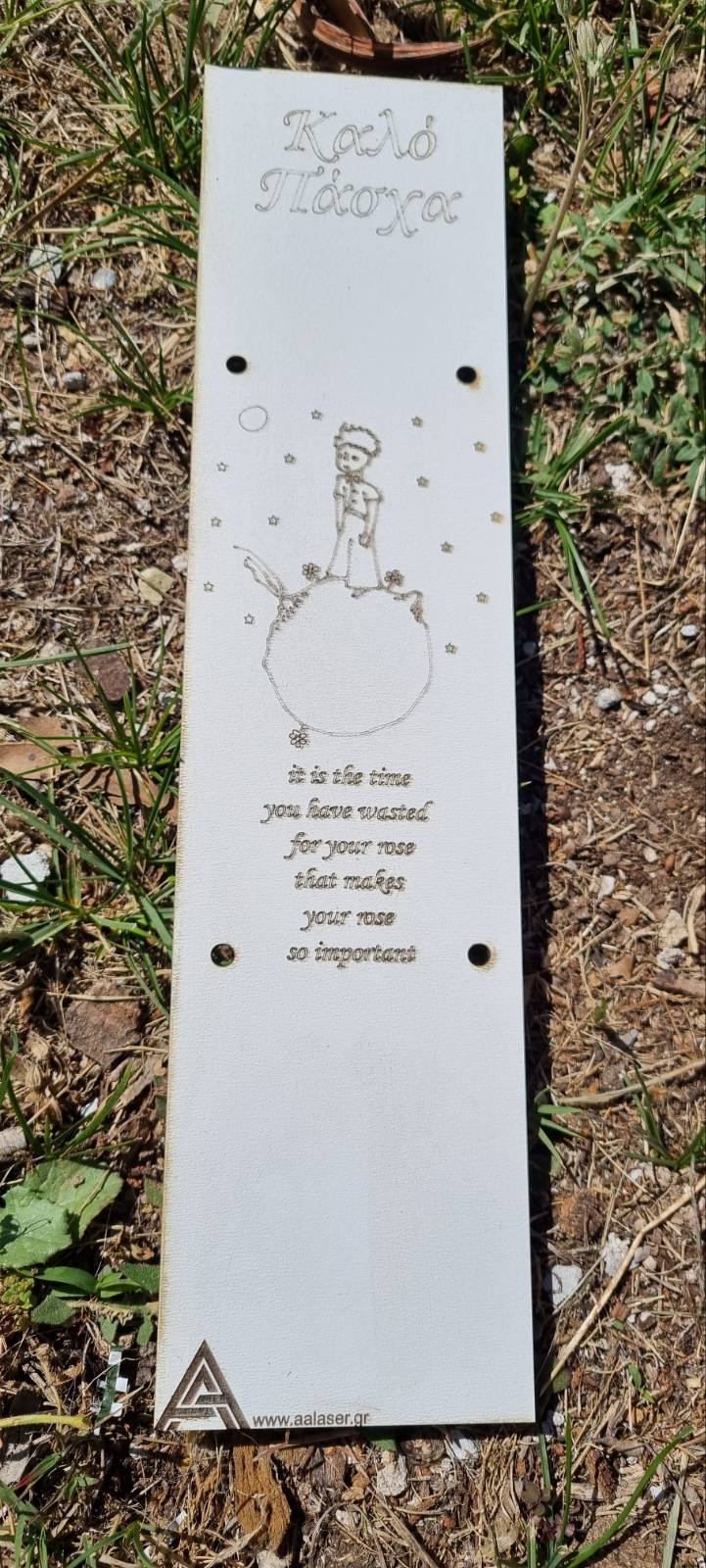 Είναι διακοσμημένη με ξύλινη φιγούρα του μικρού πρίγκιπα και συνοδεύεται από ξύλινη πλάτη.